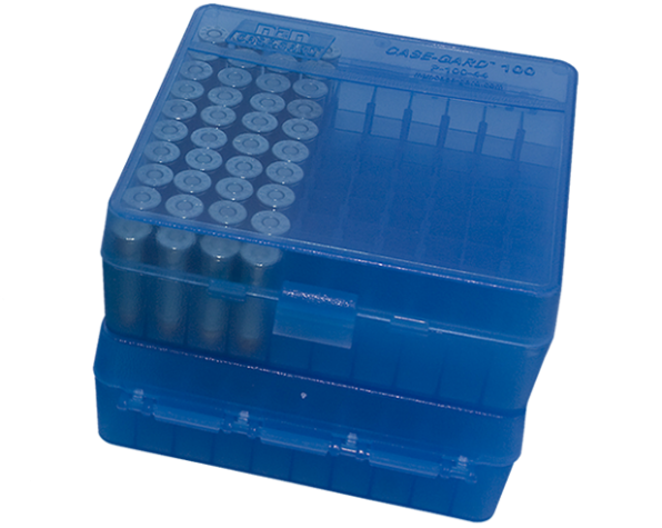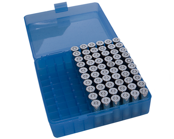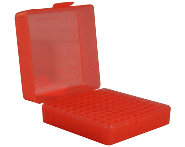 Cajas para municiones con capacidad para 100 unidades. Posee tapa Flip-Top con traba de seguridad. Perfecta para el polígono o guardar municiones recargadas. Con superficie rugosa para mejor grip, también se pueden apilar. incluye etiqueta para identificar las municiones.
