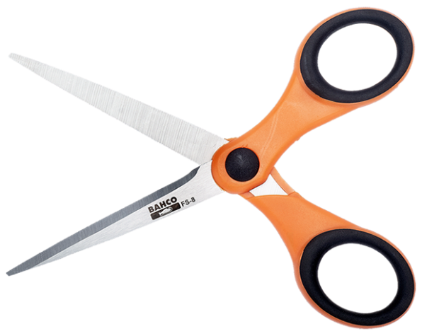 Tijera de uso floral con anillas de material blando (mediana). Utilizadas para cortar tallos de diámetro pequeño, lazos, todo tipo de papel, cartón delgado y tejidos usados en decoración floral. También sirven para podar plantas de interior y cortar las flores marchitas de zonas de difícil acceso. Hojas largas y rectas fabricadas en acero inoxidable con micro serrados.
