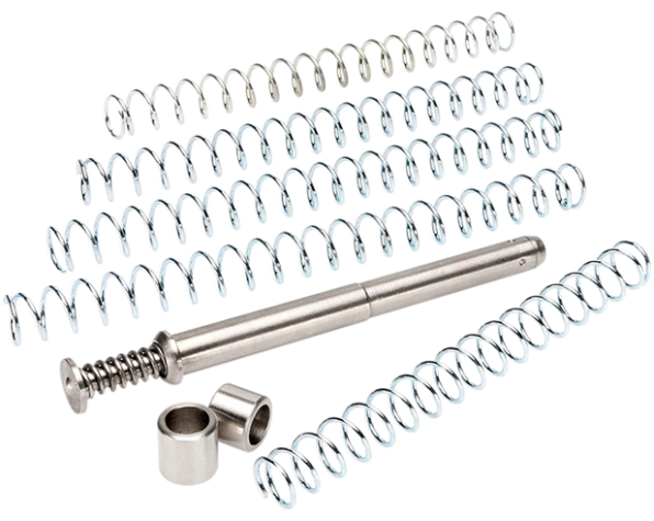 Sistema mecánico de reducción de recuperación para pistolas Tanfoglio modelos Limited - Limited Pro - P19L - Custom - Stock III - Match Todos los calibres. Este sistema funciona debido a la varilla compleja de múltiples muelles (tres muelles) y controla la funcionalidad de la pistola. El tercer resorte que está contenido dentro de la varilla controla el movimiento de la corredera para que nunca se golpee en el marco. Además de este sistema, hay dos resortes separados para que el tirador pueda afinar el arma según sus estándares personales. El resorte más largo (más bobinas) es más fuerte y tiene una clasificación de libras más pesada que el resorte más corto. Ventajas Generales Seguimiento más rápido de los tiros - Velocidad de disparo mejorada - Protección contra deslizamiento y marco - Eliminación de atascos - Reducción significativa del retroceso - Mejor concentración en doble tap - Mejor control y mayor precisión.