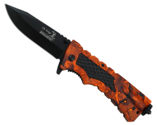 - Navaja plegable de acero inoxidable con cacha plástica naranja.