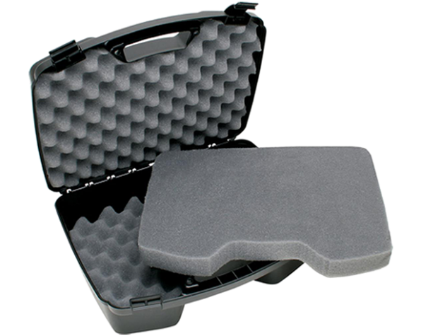 Estuches rígidos de doble piso con capacidad para 4 pistolas o revólveres con cañones hasta 8 pulgadas. También hay espacio disponible para candado de gatillo (no incluido). El estuche posee pestillos de cierre seguros y fáciles de utilizar. Incluye 3 piezas de goma espuma para transportar las armas de forma segura.