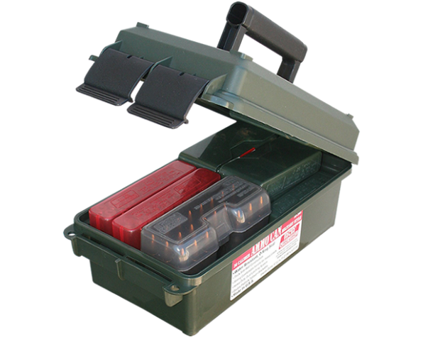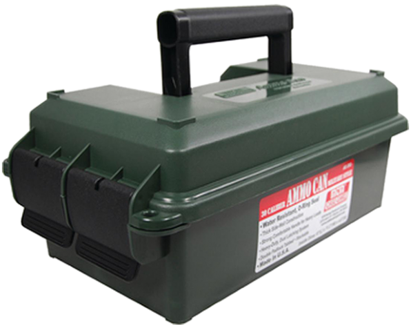 Caja porta municiones moldeadas de plástico polipropileno, muy resistentes. Pueden cargar hasta 250 unidades de municiones calibre 30-06. Con cierre O-Ring que provee un sellado para una mejor resistencia al agua. Con manija de transporte muy resistente. Cuenta con pestillos muy seguros de fácil apertura, bordes moldeados para montar cajas encima.