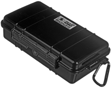 Sus dimensiones son 13.1 x 6.7 x 3.5 cm. Se puede sumergir la maleta en agua a una profundidad de un 1 metro durante un tiempo máximo de 30 minutos. Disponible en colores opacos o transparente con forro de color. Indestructible, estanca al agua y al polvo. Válvula de despresurización, equilibra la presión interior e impide la entrada de agua. Mosquetón. Cierre de fácil apertura. Garantía de excelencia de por vida. Recubrimiento protector de goma que también actúa como anillo de sellado. Pernos de acero inoxidable.
